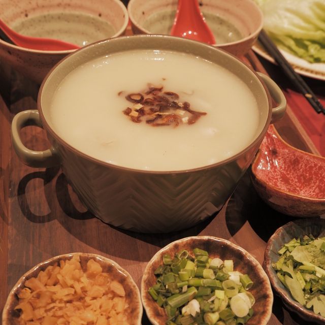 📍Location: Causeway Bay Station Exit C, about five minutes walk. 🏠Environment: The decoration design uses red as the main color, but it is not out of the ordinary. There is a beautiful beverage cabinet near the door, and Western-style decorations are placed. The glass windows use European-style curtains and a red square table for hairdressing. There is also a Western-style high stool bar, but the area is not large and there are not many seats. The overall environment is elegant and comfortable. 🤵🏻Service: Order via QR Code and receive a one-cent discount. 🍽️Dinner: There is no set menu, only a la carte. The place was packed that night and you had to make a reservation to get a seat, but the oyster cakes and slow-cooked beef ribs that I wanted to eat were sold out. Free snacks: 🍯Caramel 🍿popcorn. I never thought of using 🍿popcorn as an appetizer. It’s quite special. 🥢Clam meat lettuce wrap🥬 $88 Mihuo's clam meat is fried with radish and minced meat to bring out the salty flavor. Crispy rice noodles are used as the base and fresh lettuce is served separately. Everything is wrapped together and eaten. It has rich layers 😋. The refreshing and sweet lettuce just balances the saltiness of the clam meat 😚. It's good. It would be more delicious if some shrimp paste could be added 😙. 🥢Black Bean and Pepper Clams $88 The clam meat is sweet and tasty, but a little sandy, and the black bean sauce is sweeter and more fragrant than usual 😉, and a little spicy, very delicious ☺️. 🥢Salt and pepper Puning tofu $68 A serving of six pieces of golden tender tofu, wrapped with Puning sauce and pepper salt🥰, fried until crispy and thin on the surface🤩, the tofu inside is very tender🤤, dipped in some leek salt water to reduce the heat, it is a great side dish, a must-try👍🏻. Oyster porridge (for two) $108 The presentation is exquisite🥰, and the store owner is very considerate, adding chives, choy sum, and coriander, allowing diners to add according to their personal preferences and get what they need😚. A big bowl of oyster porridge, 🦪 has a lot of oysters, each one is fresh and smells very fresh and fragrant. The porridge base seems to be cooked with 🍚 pearl rice, which is plump and moist, and has a dense taste🤤. Adding some vegetables appropriately can add salty fragrance. It is also a must-eat staple food👍🏻. 🌸Lychee and Elderberry Soda🧃 (less ice) $42 When canned, it has a very fragrant floral aroma, bringing out the sweetness of lychee. 🍑Peach lemongrass oolong tea🧃 (less ice) $42 It tastes very similar to the previous cup. Ghost 📍21/F THE L SQUARE, 459-461 Lockhart Road, Causeway Bay #registerhoteltestsleeper#Causewaybayfood #Causewaybayrestaurant #summerfoodierecommendations #foodie #localtour #hkfoodie #hongkongfood #Chaozhouporridge