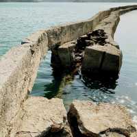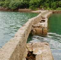 A stone bridge for pedestrians crossing the sea that is still well preserved and has historical value