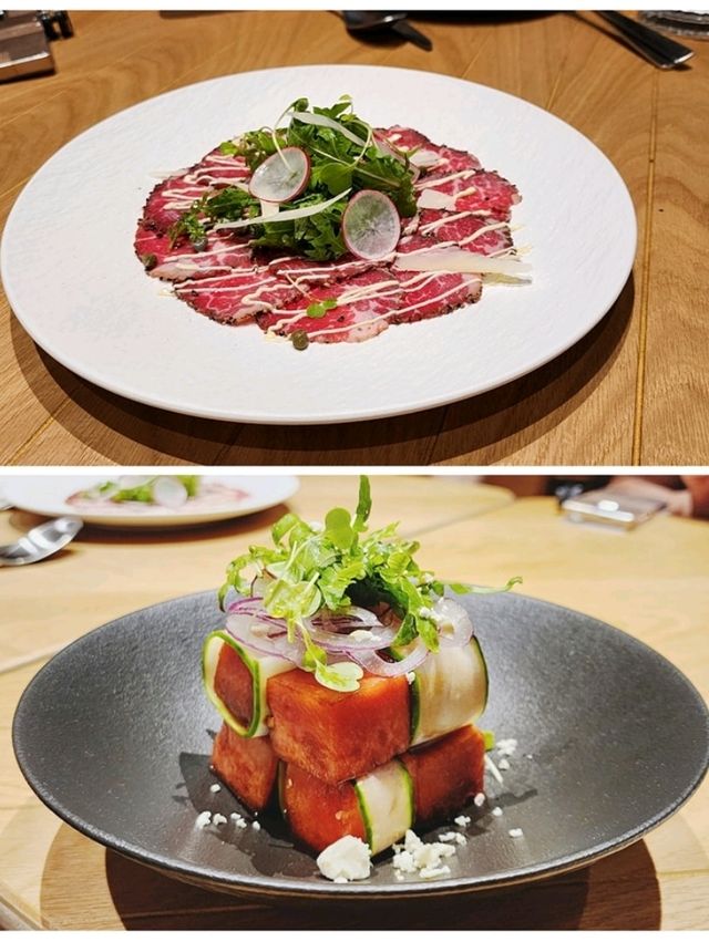 A petrified wood-themed cafe has opened in Tsuen Wan District, and the environment is super beautiful. The entrance of Parkside@Nina is the coffee shop in collaboration with NOC coffee. The restaurant is beautifully decorated with warm brown tones and many check-in spots. This location is very much like a church. The wall artwork on the other side is made of petrified wood from trees blown down by typhoons. There is also an outdoor area, which is perfect for relaxing when the weather is clear and the air is fresh. Italian style beef carpaccio $138 🐮, the taste is lighter, but it is quite good with the ingredients and crushed black pepper! Sichuan Spicy Watermelon Salad $108, watermelon 🍉 can be paired with other delicacies or sauces to create endless possibilities. Cucumber slices are wrapped in sweet and juicy watermelon. When you take a bite, the sweetness bursts out first, followed by the Sichuan spicy sauce. The result of mixing in the mouth is really amazing. Laksa foam soup with shrimp chips $78🦐, those who love spicy food will love this soup. For me, it is very satisfying. There are seafood cubes in the laksa soup, and you can also dip the crispy toast in the soup, which gives you a double taste. Hokkaido corn and potato soup is $78, full of corn aroma and smooth in the mouth, and both adults and children will love it. Air-dried ham and mushroom pizza $158🍕, handmade sourdough pizza freshly made in the self-built oven, the edges are crispier and more delicious, and you won’t feel too full. Red wine lees tiger prawn rolled spaghetti $158🍝, ordinary rolled spaghetti, after adding red wine lees, adds a unique aroma. After cooking with cream, the thickness is adjusted to just the right level. Add the chewy tiger prawns and it has become a well-received dish. Roasted chicken with chili sauce is $188🐥. It is grilled to perfection and is perfect for sharing with friends. The chicken skin is fragrant and the meat is tender. It can be eaten with chili sauce, which is very fragrant and tasty. As for drinks and desserts, petrified wood elements are also incorporated 🪵, such as the special petrified wood chocolate cookie $78 and Fossil Latte (Oreo) frozen fossil latte ($55), etc., which are first-class check-in. In addition, we also ordered the date caramel pudding ($68) and other special drinks. The date caramel pudding had a prominent coconut flavor and the sweetness was just right, which was good. I also had an Orange tonic espresso ($52) to clear my mouth 👍, and my friend's cup was also very refreshing! Parkside@Nina also provides VIP ROOM, which is highly private. It feels like eating private dishes! #parksideatnina #cafe #tsuenwan #noccoffee #Wood petrified