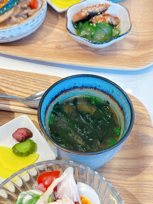 The cozy little shop Jiangma✨ in Ngau Tau Kok has always focused on Japanese set meals. The restaurant environment is simple and warm, with wooden elements as the main decoration, matched with soft lighting to create a comfortable dining atmosphere. There are Japanese illustrations on the wall, adding a bit of artistic atmosphere. Recommended for dinner with friends or family💕 The popular 🔹One Juice and Three Dishes lunch set is made with Japanese rice. The rice grains are distinct, sweet and delicious. The miso soup is light and smooth, and there are also sour and crispy pickles to add a fresh feeling to the whole meal. No wonder it has become a popular choice! 🔹Miso stir-fried vegetables and pork The pork is fried to perfection, tender and juicy, and paired with a variety of fresh seasonal vegetables, it is delicious and fragrant. The aroma of miso adds a layer of flavor to the whole dish, making everyone's appetite grow. 🔹Teriyaki salmon with ginger tartar sauce The salmon is tender, and the sweet teriyaki sauce and spicy ginger are perfectly combined, making every bite full of layers of flavor~ 🔹Eel pickled cucumber A very refreshing dish. The cucumber is sliced ​​thinly and is crispy and refreshing. The pickled eel is sour and sweet, very appetizing. 🔹Shredded Chicken Salad A light choice~ Fresh shredded chicken paired with fresh salad and topped with a special sauce, it is colorful and refreshing. 🔹Korean pickled mustard greens, pork, corn, hot spring eggs, Korean-style sweet and spicy sauce, Western-style handmade noodles Served with cream pumpkin soup and drinks. The handmade noodles have a smooth texture and are paired with Korean pickled leaves, pork, corn and hot spring eggs. The Korean sweet and spicy sauce and the chewy noodles complement each other, making it a very rich main dish. 🔹Drinks In terms of drinks, Jiang Ma offers options such as hot Japanese green tea, hot Earl Grey tea, and hot American coffee. Hot Japanese Green Tea is refreshing and smooth, while Hot Earl Grey is rich and mellow, exuding a unique flavor and aroma. Ginger Mom ✨ 📍Room A, 1/F, Ocean Industrial Centre, 29 Tai Yip Street, Ngau Tau Kok