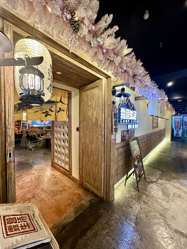 Camping themed Japanese izakaya, high quality wagyu beef, nice environment and atmosphere