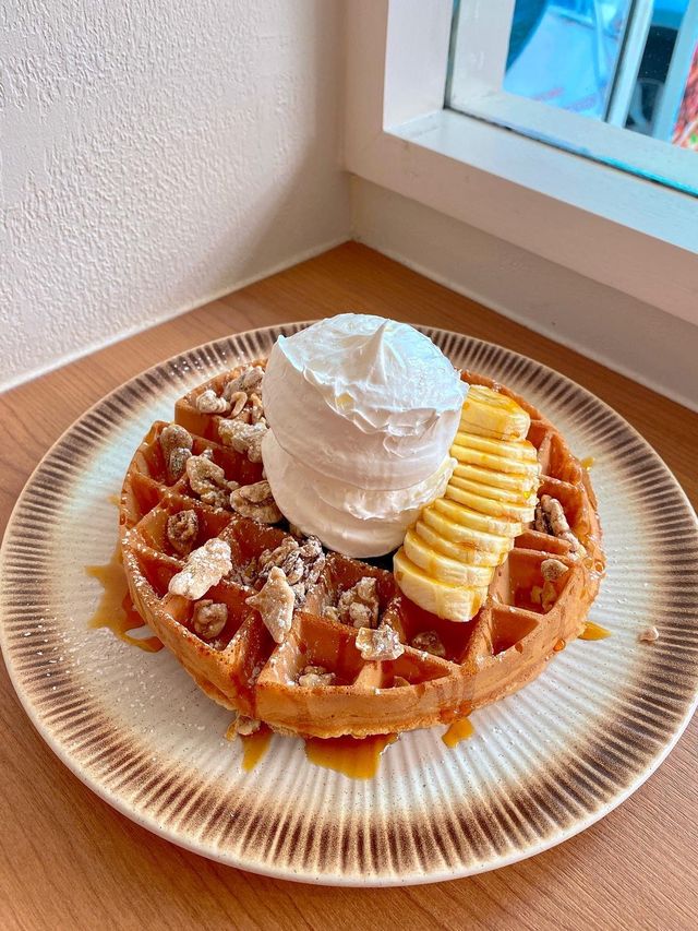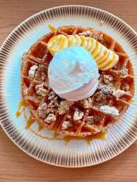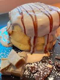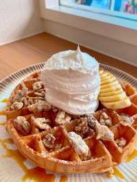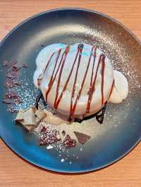 This shop focuses on soufflé pancakes, more people during the holidays, fortunately booked a place online in advance, he arranged a bar table for us to sit, ordered hazelnut hojicha soufflé class $ 138 and banana sea salt caramel waffle $ 108, the latter caramel flavor is not enough Salty taste, the cream is not smooth enough, the waffles are thick enough, the appearance is ok, but the taste is average, as for the hazelnut hojicha pancake, hojicha flavor is heavier, not quite eat hazelnut flavor, sweet shop moderate, pancake fluffy, not too airy, looks good, but the price is more expensive. #tera #jordan #dessert #sweets #afternoon tea #waffles #パンケーキ #スイーツ #dessert #banana #caramel #caramel #キャラメル