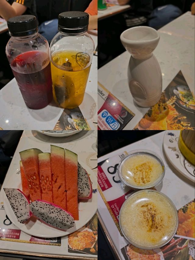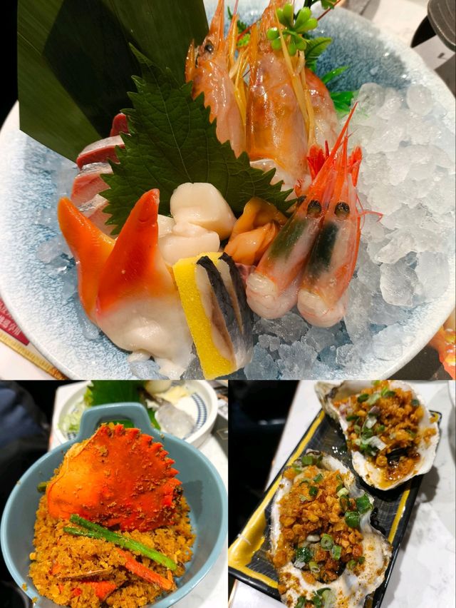 Gokujou Daikiya The restaurant is located on the 9th floor of Causeway Bay Plaza 1, 48 Hennessy Road, Causeway Bay, Hong Kong Island. The decor is simple, with spacious seating for a comfortable dining experience. The restaurant specializes in all-you-can-eat Japanese cuisine, and the staff are attentive and polite. Sashimi We chose Hokkaido scallop sashimi, northern surf clam sashimi, ark shell sashimi, herring sashimi, kingfish, yellowtail sashimi, Thai-style tiger prawn, sea urchin and fish roe toro mousse monaka, premium large red shrimp, sweet shrimp sashimi, whelk sashimi, ark shell sashimi, pen shell sashimi, abalone sashimi, and salmon sashimi. For those who love sea urchin and fish roe toro mousse monaka, abalone sashimi, and Thai-style tiger prawn, the sea urchin and fish roe toro mousse is fresh, the abalone is crisp and chewy, and the Thai-style tiger prawn tastes fresh and sweet. Sushi We selected the new caramel milk foie gras sushi, sesame sauce toro mousse large red shrimp sushi, avocado sauce tuna sushi. The caramel milk foie gras sushi is the same as at Sushi Lang. For lovers of sesame sauce toro mousse large red shrimp sushi, the large red shrimp is incredibly fresh and sweet. Seafood We chose the new Typhoon Shelter-style fried crab and curry giant prawns, Sichuan grilled Hiroshima oysters, ginger and scallion stir-fried eel balls, and Shaoxing wine marinated abalone. The restaurant uses fresh shrimp and crab ingredients. The Typhoon Shelter-style fried crab is flavorful, and the Shaoxing wine marinated abalone has a mild wine aroma with a crisp and bouncy texture. Grilled Items We ordered salt-grilled beef tongue, grilled eel with sauce, premium golden pillow durian grill, grilled greenhouse sweet pineapple, and crispy fried wild cat king. The grilled eel is tender and fragrant, and the salt-grilled beef tongue is flavorful. Others Abalone and king crab porridge, black pepper honey bite-sized beef. The bite-sized beef is rich in flavor with a strong black pepper taste. The abalone and king crab porridge is very generous with ingredients; the king crab is fresh and delicious, and the abalone is crisp and chewy. Buffet Area There are cold and hot Japanese sake options. Hot dishes include Chinese soup dumplings, shrimp dumplings, and siu mai, mouth-watering chicken, braised pork knuckles, vegetables, and fried chicken. Cold dishes include salad greens, fish skin, Sichuan pepper, and kimchi options. Soups include black-bone chicken with cordyceps flower soup and fish maw soup. Desserts and sweet soups include red bean soup, durian tart, yogurt, tofu pudding, and pudding. Fruits include watermelon, cantaloupe, dragon fruit, and peach plum. Ice cream options include local brands, Korean brands, and French brands.
