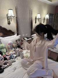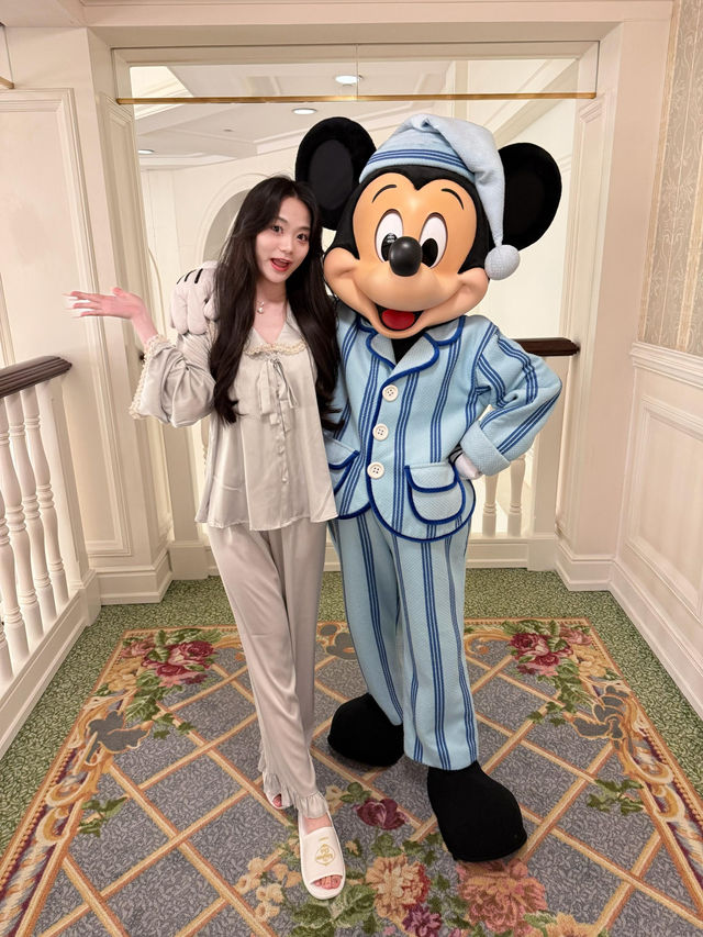 Room rates range from about 5k to 9k per night, fluctuating by time slot, but as a five-star hotel inside the park, this experience is absolutely worth it! When checking in, just tell the front desk on the first floor that you are an Executive Lounge guest, and a staff member will help with your luggage and take you to the exclusive front desk on the 7th floor for check-in. You only need to provide your name, phone number, and Hong Kong-Macau travel permit—super convenient~ The 7th-floor front desk is connected to the Executive Lounge restaurant, open from 7:30 AM to 10:00 PM, where you can dine with free meals and desserts, plus order additional dishes, all filled with Disney magic! The biggest surprise is that every night from 7:30 to 7:50, a random Disney friend in pajamas comes to say goodnight! On the first day, I met Pajama Mickey, and that feeling was truly unforgettable for life 😭 From 3:30 to 4:30 PM, there are also craft activities, and you might even run into Pluto, doubling the happiness! At 9:35 PM, turn on the TV and scan the code to listen to bedtime stories in Mandarin, instantly making you feel pampered like a baby~ This stay was so worth it that I want to come back N times! #DisneyExecutiveLounge #HappyHome