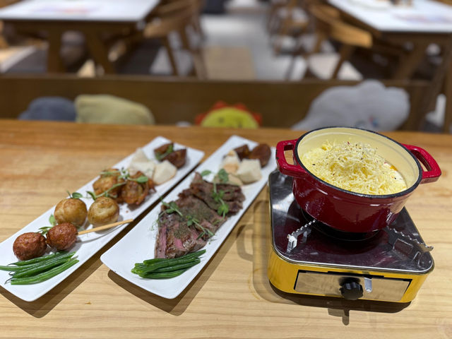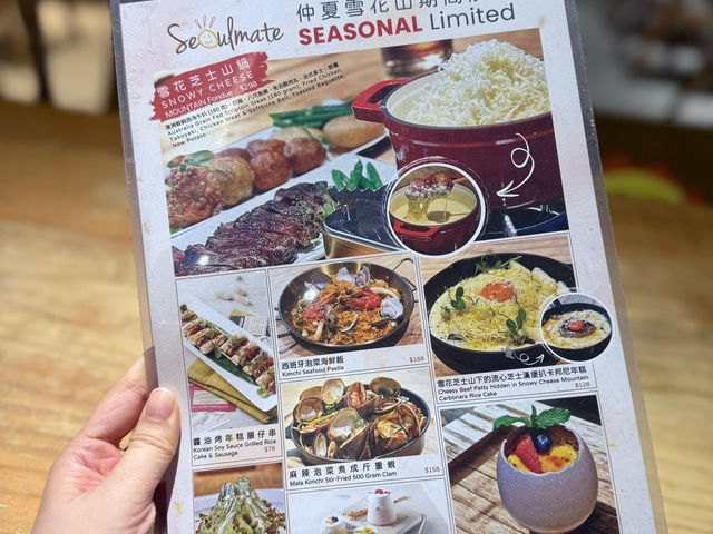 Tseung Kwan O South always gives me a relaxing vibe, so my husband and I often go there for a stroll and enjoy some good food. This time, we revisited an old favorite to try some Korean fusion creative dishes 🇰🇷 at Seoulmate Cafe. They even have a limited-time menu 😳! Both the taste and presentation are top-notch 👍🏻. Here’s what we ordered: Snow Cheese Mountain Hotpot - $298 Includes Australian grain-fed sirloin steak (180g), fried chicken, grilled octopus, minced chicken meatballs, French toast, and baby potatoes. It’s a cheese fondue 🫕🤤! Haven’t had this in ages! The set is quite filling, perfect for two people. The sirloin steak was the highlight—cooked to about medium-well, just right! Pairing it with the indulgent stretchy cheese was simply divine. The French toast soaked in rich cheese was a must-try—so flavorful and aromatic! Fried Soft-Shell Crab Seaweed Roll - $108 Super big roll packed with lots of ingredients (*^^*). The soft-shell crab was fried to perfection, and the fresh veggies balanced the flavors really well! Spicy Kimchi Clams - $168 The MVP of the day! Surprisingly delicious! Each clam was plump, sand-free, and infused with the spicy and fragrant kimchi flavor. So addictive (*^^*). Pistachio Snow Mountain Panna Cotta - $58 Beautifully presented, and you can customize the sweetness with condensed milk for a richer flavor! The texture was firm and unique compared to regular panna cotta—so fun to eat! Mango Milkshake with Milk Foam Snow Mountain - $48 Japanese Uji Matcha Latte with Milk Foam Snow Mountain - $48 A visual treat with distinct layers—so soothing! The milk foam was thick and creamy, with a salty-sweet taste that was smooth and delicate. The mango 🥭 flavor was fragrant, while the matcha flavor became more pronounced with each sip! Seoulmate Cafe Address: 23 Tong Chun Street, Monterey, Tseung Kwan O South