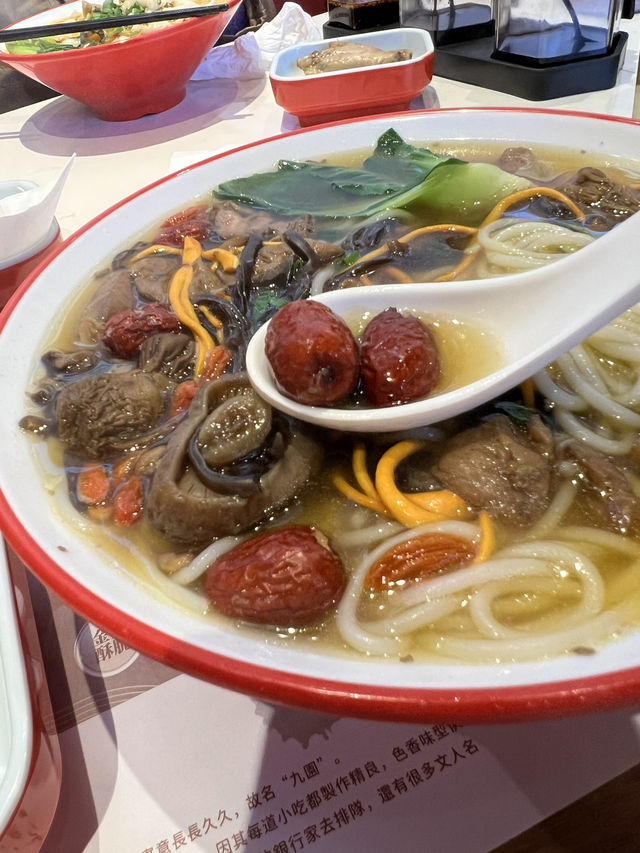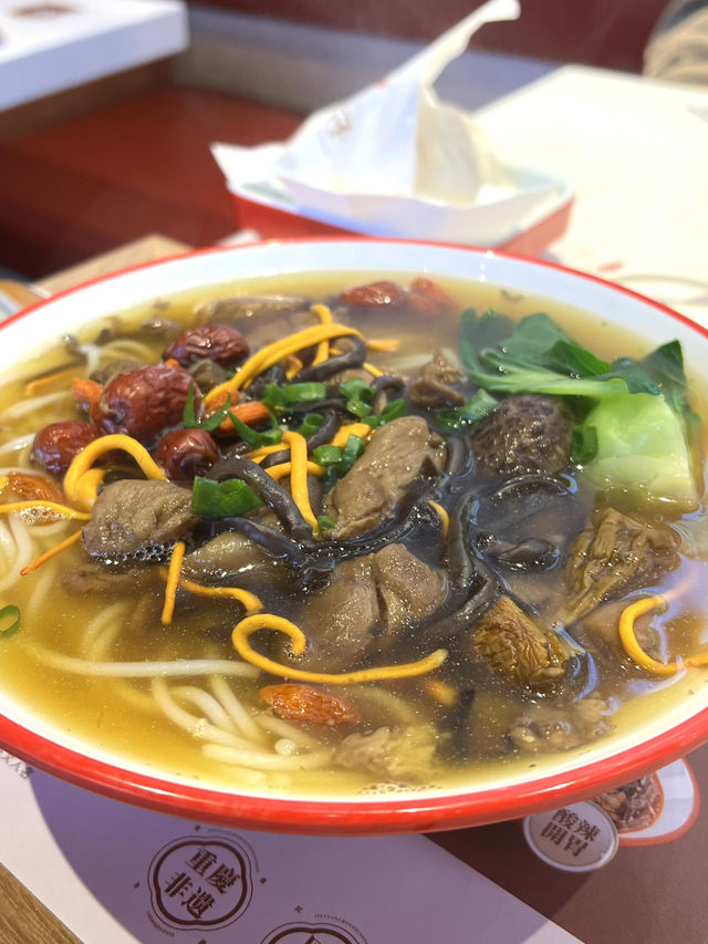 #September Good Places 2025 👀 Restaurant environment: plenty of light, comfortable seating, simple and novel decoration, attentive attitude of waiters, fast and proper. My friend and I ordered two sets and two snacks Healthy Beef Mushroom Chicken Noodle Set With drinks and boiled eggs, you can switch from noodles to rice noodles. The soup is very rich in ingredients, with beef mushrooms, oversized winter mushrooms, red dates, vegetables, etc. The herbal flavor is not very strong, the soup is sweet and very healthy, the chicken is well cooked, with rice noodles, you can drink the whole bowl of soup. Worth recommending. Sauerkraut and squid fillet rice noodle set With sour plum soup and chicken wings Not too spicy, the taste is just right with the unique mouthfeel of pickled cabbage. There is enough fish fillet to cut into thin slices. Easy to enter. Nine Garden Intangible Cultural Heritage Vegetable Meat Bun It was served fresh and hot, the filling was fresh, the texture of the bun was soft and fluffy. Worth recommending. Red sugar dumplings It is also freshly made, crispy on the outside and soft on the inside, the red sugar inside melts, sweet and satisfying. 📌Restaurant Name: Jiuyuan Chongqing Snacks 📌Address: Shop UGO51G, G/F, New Town Centre, Phase 2, 9 Po Lin King Road, Tseung Kwan O 📌 Access: Exit A2 of Po Lin Station, about 4 minutes walk 📌Recommendation Index: 👍👍👍👍👍 (5/5)