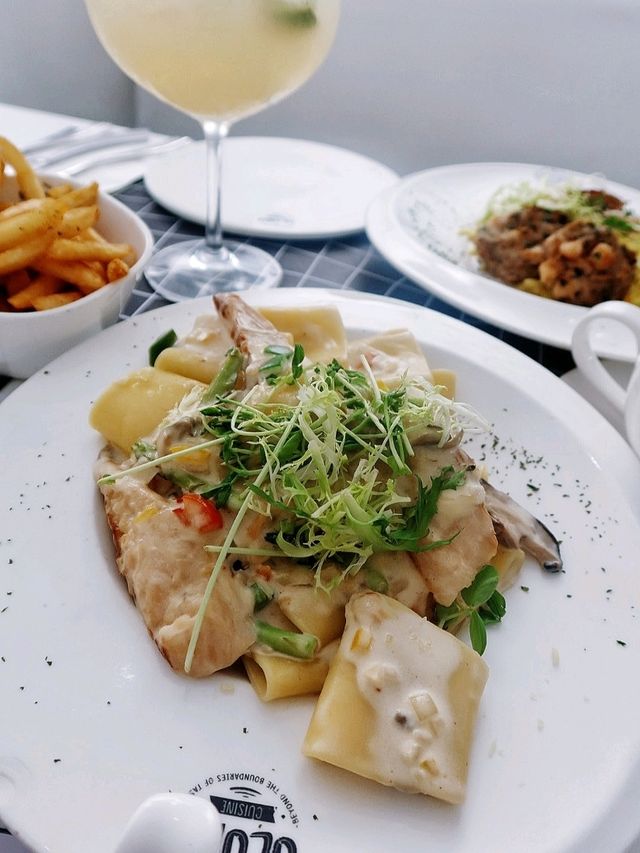 📸 Wan Chai's popular Instagram-worthy cafe "ULURU" features a black-and-white comic-style design, exuding a girly vibe 🩰. Recently, they've introduced a new concept: 【ULURU Hong Kong Nostalgia】Fusion Dinner, blending classic Hong Kong flavors with Western cuisine for a series of delightful surprises 💥. 🍝 Rich Fermented Bean Curd Cream Chicken Penne: The savory fermented bean curd meets creamy white sauce for a rich yet not overwhelming flavor. The penne perfectly absorbs the sauce, and the tender chicken strips make this East-meets-West dish a perfect match. 🍛 Handmade Pan-Fried Pork Patty x Crab Meat and Salted Egg Yolk Risotto: The handmade pork patty has a slightly bouncy texture, while the crab meat and salted egg yolk risotto is creamy and flavorful, offering a heartwarming and satisfying experience. 🍟 Crispy Thick-Cut Fries with Truffle Sauce: Double truffle delight with a rich sauce, crispy and non-greasy thick-cut fries. Dip them in ketchup for an extra layer of flavor—a must-try for fry lovers. 🎂 2D Cake: The strawberry 2D cake looks like a character straight out of a comic! A single strawberry sits atop the snowy white cream, with simple and adorable lines. The sponge cake is soft and fluffy, perfectly paired with the light cream (portion suitable for sharing between two). 🍫 Tiramisu: Light and creamy with a crispy base, offering a sweet yet slightly bitter taste—absolutely irresistible. 🍹☕️ Their signature drinks are a must-order on every visit: "Virgin Lychee Mojito" is refreshingly sweet with a fragrant lychee aroma, perfect for cleansing the palate; "Tiramisu Coffee" features an adorable bear latte art, with rich coffee flavor that lifts your mood❣️ 🌂 Follow @uluru.hk to receive a transparent straight umbrella and enjoy both delicious food and gifts! 📍ULURU 1/F, Chun Fai Building, 1-11 Spring Garden Lane, Wan Chai (MTR Wan Chai Station, Exit A3, about a 2-minute walk)