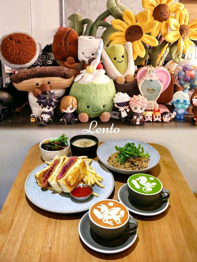 Lento Coffee is a popular exquisite latte art ☕️ coffee shop Located near Songwangtai MTR station there is a very beautiful Café with many dolls and latte art. Beef Sando $150 Japanese beef sandwich (50% cooked) with french fries Popular must-eat 👍 Beef has five percent cooked color pink tender , the beef is thick, juicy and tender. Served with crispy bread and sauce, it's endlessly reminiscent😋 Mushroom Risotto $135 Mushroom risotto The risotto side dish had mushrooms, with lots of fried garlic on top which particularly added to the flavor. The inside also added pickled mustard taste more layered. The rice tastes just right, the sauce evenly coats the pasta 🍽 Additional $35 soup and $35 salad Today's soup is potato cream soup 👍 The salad uses my favorite black vinegar, which is very appetizing Hot Matcha latte 💚☕️ Matcha latte, milk and matcha flavors are well balanced, the milk is very smooth after foaming, the texture of the softness is just right. The pattern of the latte art is a seahorse😍 Hot Mocha 🤎☕️ If you like strong coffee and chocolate flavors, this is perfect, very layered flavor aftertaste rich and rich. Dark brown and black color can increase the visual of the latte art pattern, the pattern is a single flying horse 🐎👍 I was delighted to taste a beautiful cup of latte art coffee today ☕️. After taking a latte art experience class a few months ago, I began to appreciate the barista latte art, to pull some complex patterns, it really takes a lot of skilled skills and feel to match. If you also prefer to have high quality latte art coffee, this is also a good choice 👍 There are not too many seats, the environment is quiet and comfortable, suitable for chatting. Very thoughtful decoration, many cute pop dolls, can be enjoyed while eating, the staff is polite 🥰 Lento @lento_hk 📍G/F, 428-430 Prince Edward Road West, Kowloon City, Hong Kong (G/F, 428 Prince Edward Road, West Kowloon City)