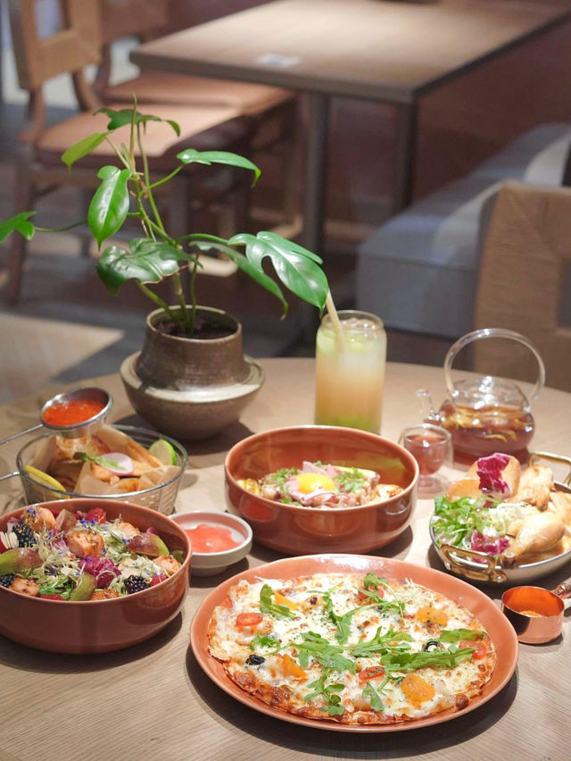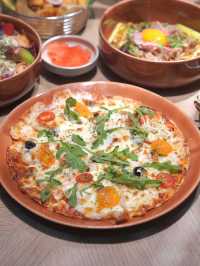 There are holiday-style cafes near the airport 🙂↔️11 Skies’ new flower kitchen CAFÉ, very Vacation style! The mall is close to the Asia Expo, only 5 minutes walk🚶🏻♀️ The restaurant is pink as the main tone, the walls are full of 💐 floral specimens with soft 💡 lights, it's really Igable😆 The environment style is completely different from Tomacado flower kitchen! The meals are mainly healthy light meals, coffee ☕️, flower and fruit tea🍵. Perfect for working people/groups of friends gathering and checking in📸 🔸Vanilla Roasted Three Yellow Chicken $148 Roasted Sanhuang Chicken with Herbs A plate and a half of chicken, using three yellow chicken, the chicken is not very fatty, the chicken is tender and Juicy, with roasted potatoes very tasty. 🔸Port Seafood Pizza $158 Seafood Pizza Pizza🍕 is a pizza base, crispy. There are plenty of ingredients, shrimp, salmon, squid, arugula, tomato, black olives, and a layer of cheese🧀, Yummy! 🔸Lightly pan-fried salmon super mold salad (with honey vinaigrette) $148 Lightly Pan-Fried Salmon Salad Healthy Choice❗️ Using a variety of fruits including black mulberry, red mulberry and figs, mixed with meaty salmon pieces, fresh salad vegetables 🥗, pumpkin seeds, almond slices, rich taste. 📍Flower Kitchen CAFÉ A121 & K104, 1/F, 11 SKIES, 8 Aerospace City East Road, Hong Kong International Airport, Chek Lap Kok #11SKIES #photorestaurant #FlowerChefCAFÉ #healthylightfood #HongKongphotorestaurant #pinkmain tone
