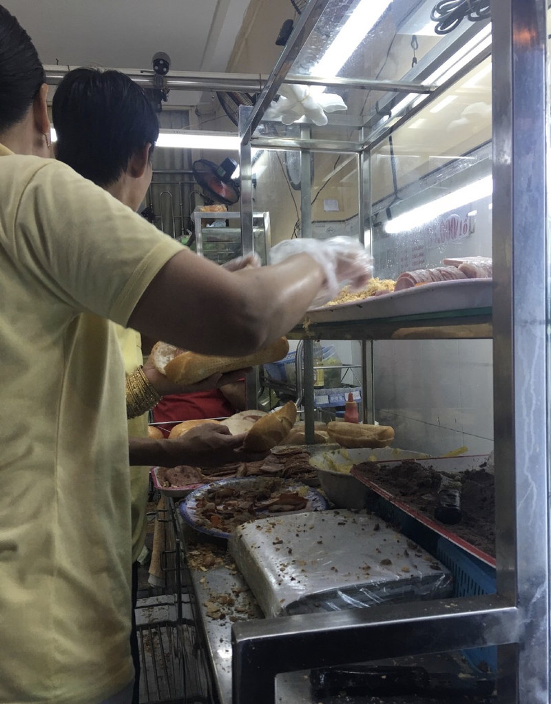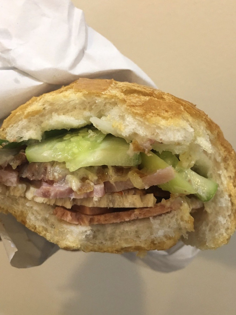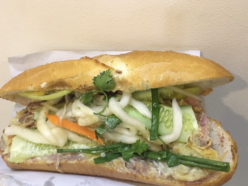 There were still many people queuing up at night. 35,000 yuan each (about 10 yuan), with a lot of ingredients, such as ham, pork floss, cucumber, onion, etc., and butter and chicken liver pate (I know it's fat). The bread was baked very crispy and the taste was very rich. The only bad thing was that the chili was too spicy. If you can't eat spicy food, you must tell them not to put chili! I originally thought that I could save it for breakfast tomorrow, but I finished it in less than ten minutes and now I am full and satisfied.