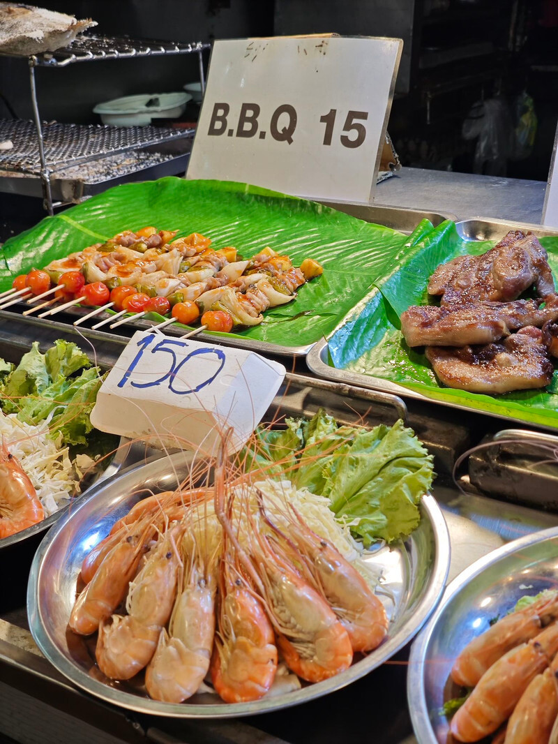 Chiang Rai Night Market, in the local area should be a place where everyone will go to a small gathering, the food court is the most lively, the most people, and the food choices are super. There are Thai-style small hot pot, Thai barbecue, fried seafood, Dongyingong noodle soup noodle soup noodles, seafood packages are the most, there are also Thai traditional chicken oil rice, seafood vegetable salad, the magic is that I saw a Mala Tang, although he is called Mala Tang, But I looked at it differently from the domestic ones, so I didn't eat it. Hahahahahaha finally chose Thai traditional dining, and the drink was cheap. A smoothie was about 40-50 baht, that is, RMB 8-9 yuan. There are cheap foods to eat, and there are slightly more expensive ones. The average price will not exceed 100 RMB ~ My market lover likes to buy clothes, hahahaha, buy a Thai traditional tube skirt at the Chiang Rai Night Market with a white coat.