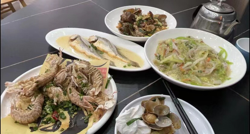 The restaurant is clean, the seafood is fresh and tastes good, the boss is attentive and often folds the plates and adds water for the guests. This time I was traveling alone and ordered 4 dishes. The fish noodles are made of fish meat and taste good. The salt and pepper shrimps are fried just right, the clams are superbly seasoned, and the small yellow croaker is fresh and tender. I feel that this is a must-visit restaurant in Shipu.