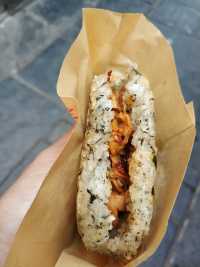 Miao Bing should be a pancake made of glutinous rice fried on both sides, with some pickled radish or something like that inside. The taste is not bad, but the price of 10 yuan each is not very affordable.