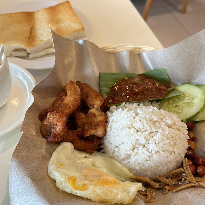 The coffee that I ordered was smooth and fragrant. The fried chicken Nasi Lemak and Mee Siam sets were excellent. The kaya butter toast was nice.