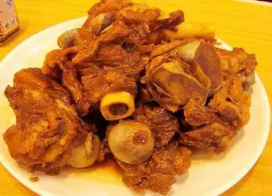 Wang Ji Braised Pork Ribs Restaurant is a fantastic two-story restaurant. Most of the diners come for family gatherings or get-togethers with friends and family, as gnawing on bones is considered unseemly and inappropriate for banquets. Among the more popular and delicious dishes are the braised pork ribs, braised pork ribs, and mashed potatoes. Before eating, each diner dons plastic gloves and devours the bones, especially after chewing the meat on the ribs, using a straw to suck the marrow from the inside, which is incredibly fragrant and greasy. The mashed potatoes, topped with chopped green peppers and scallions, are soft, fragrant, and delicious. When you feel tired of eating, a bowl of millet porridge and a few steamed buns, along with some pickled vegetables, is a real treat.