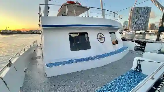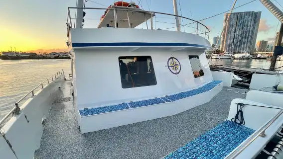 Sail along the coast of Oahu on a 55-foot double-decker catamaran