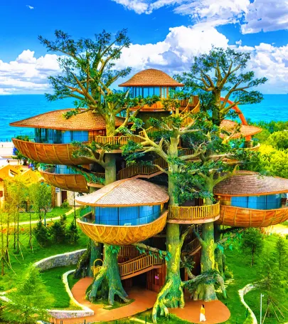 ✔️ I stayed at Kaiyuan Senbo, in a family suite with upstairs and downstairs, plus a private balcony. You can watch the sea🌊 from the balcony and it’s just a 3-minute walk to Ruyi Bridge. Also, there’s a Studio Ghibli-style bird’s nest treehouse here. Staying in the bird’s nest with someone you love, watching the sea, isn’t that romantic?